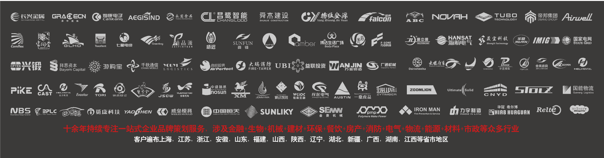 十余年誠信經(jīng)營,持續(xù)秉持“策劃成就經(jīng)典,溝通達成共識”為核心理念,先后為江蘇、浙江、上海、安徽、河北、山東、江西、深圳、湖南、山西、遼寧、寧夏、云南、湖南、四川、貴州、廣東、河南等省市地區(qū)提供集團logo設(shè)計商標標志設(shè)計,企業(yè)vi形象包裝設(shè)計及品牌營銷策劃服務(wù)。服務(wù)品牌項目行業(yè)涉及機械制造,物流倉儲,新能源新材料,電力電氣,生物醫(yī)藥,工業(yè)設(shè)備,教育咨詢,IT科技,環(huán)保綠化,照明燈具,金融投資,家居建材,酒店餐飲,房地產(chǎn),汽車,模具五金,工程建筑,水處理,大氣污染治理等諸多領(lǐng)域。